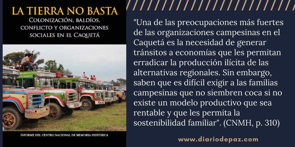 - También recomendamos conocer el proyecto Coca http://pacifista.co/proyecto-coca/; el artículo “Ni coca, ni deforestación: campesinos del Caquetá quieren cuidar el ambiente”, publicado por ¡Pacifista!; el artículo “Así fue como la coca conquistó el campo en Colombia”, de Alfredo Molano, publicado en ¡Pacifista!, y el informe del Centro Nacional de Memoria Histórica: La tierra no basta. Colonización, baldíos, conflicto y organizaciones sociales en el Caquetá.