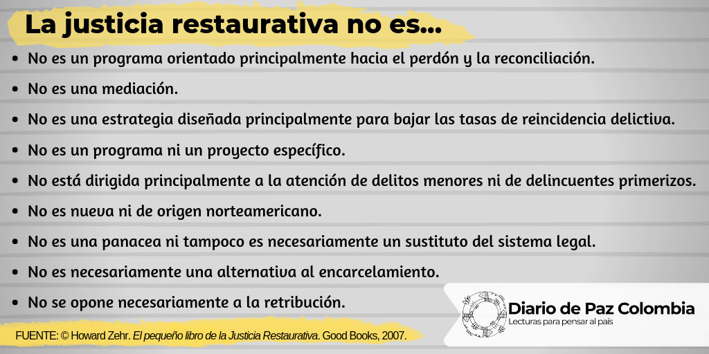 Se han suscitado tantas malas interpretaciones en torno al concepto de justicia restaurativa, que cada vez me parece más importante empezar aclarando, desde mi perspectiva, lo que la justicia restaurativa no es.