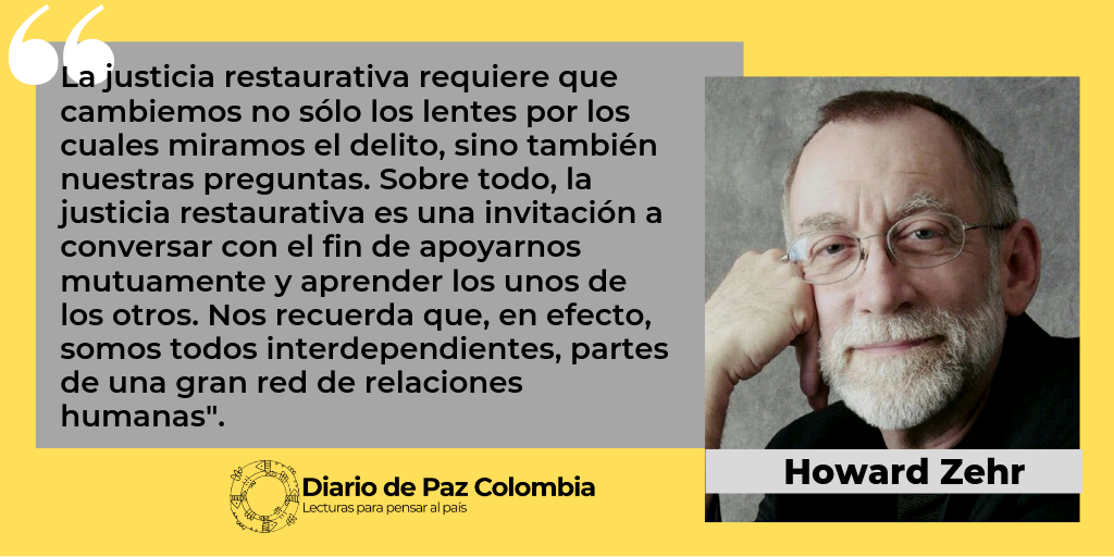 «¿Cómo debemos responder como sociedad ante el delito? ¿Cuál debería ser la respuesta ante un crimen o un acto de injusticia? ¿Qué se requiere para hacer justicia?». Estas son las preguntas iniciales de Howard Zehr, un prolífico escritor y profesor estadounidense que ha dedicado su vida profesional al estudio de los crímenes, los modelos de justicia en el mundo y al conjunto de principios conocidos como justicia restaurativa (justicia reparadora o justicia compasiva). Para alimentar el diálogo sobre la justicia transicional en Colombia, te invitamos a conocer y a compartir una de sus obras.