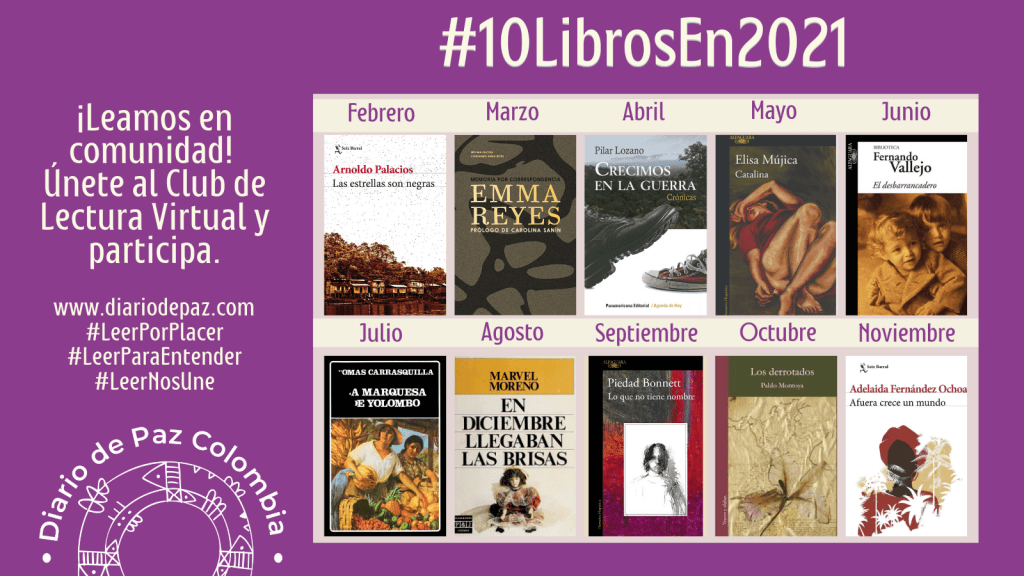 Este club es una estrategia de promoción de lectura, escritura y diálogo constructivo dirigido por Diario de Paz Fundación. Con este proyecto buscamos unir a los colombianos, dentro y fuera del país, en una reflexión colectiva sobre la historia y la realidad nacional. Si no lo has hecho, aquí puedes unirte a esta comunidad lectora. En este contenido presentamos brevemente las obras elegidas para 2021. Para conocer más nuestro plan lector puedes seguir este enlace.