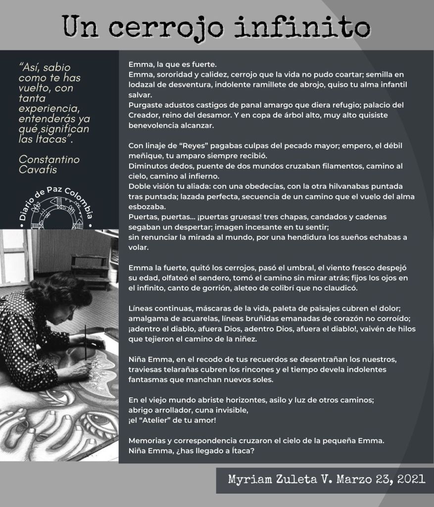 - Colombia lee Memoria por correspondencia, las cartas sobre la infancia de Emma Reyes.