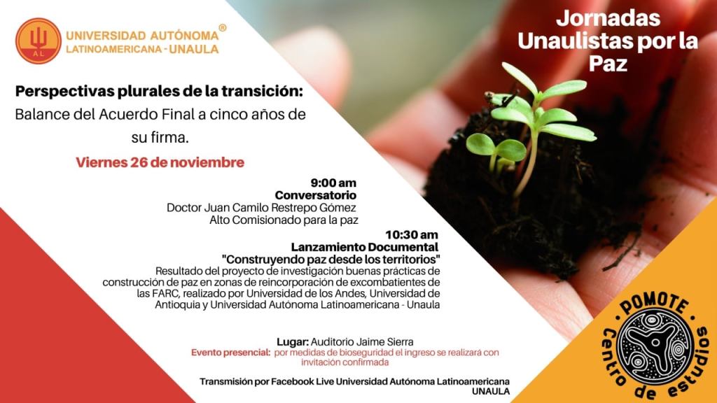 Evento organizado por la Universidad Autónoma Latinoamericana, con la presencia del Alto Comisionado para la Paz, Juan Camilo Restrepo. Disponible en este enlace.