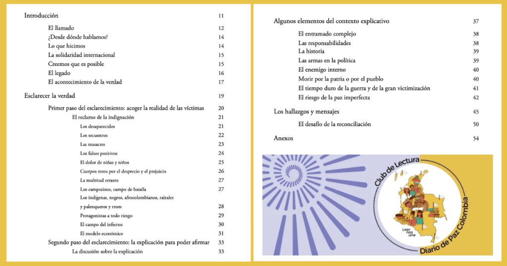 Con este texto dimos inicio en 2023 a una estrategia de lectura, apropiación social y difusión del Informe Final de la Comisión para el Esclarecimiento de la Verdad, la Convivencia y la No Repetición: «Hay futuro si hay verdad». Una iniciativa del Club de Lectura de Diario de Paz.