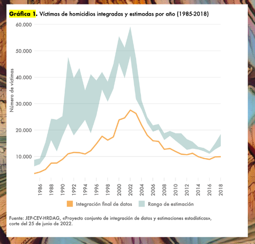 Con respecto a las responsabilidades, apoyados también en técnicas estadísticas e inteligencia artificial, determinaron la responsabilidad de X o Y grupo armado, de acuerdo a la región del país y el histórico de la región.